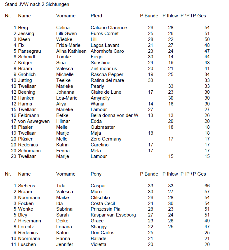 | Name | Vorname | Pony | P1Q | P2Q | P Finale | PQ | P Ges |